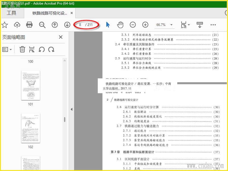 pdf扫描文件共211页 作 者蒋红斐 中南大学出版社 2017年11月 《铁路线路可视化设计》内容包括铁路线路设计原理与方法,建立设计线行经地区的三维空间的地形模型,利用平面、纵断面、横断面及桥、隧、路基等设计数据建立线路三维模型,以及将这两个模型拼合在一起形成铁路线路三维景