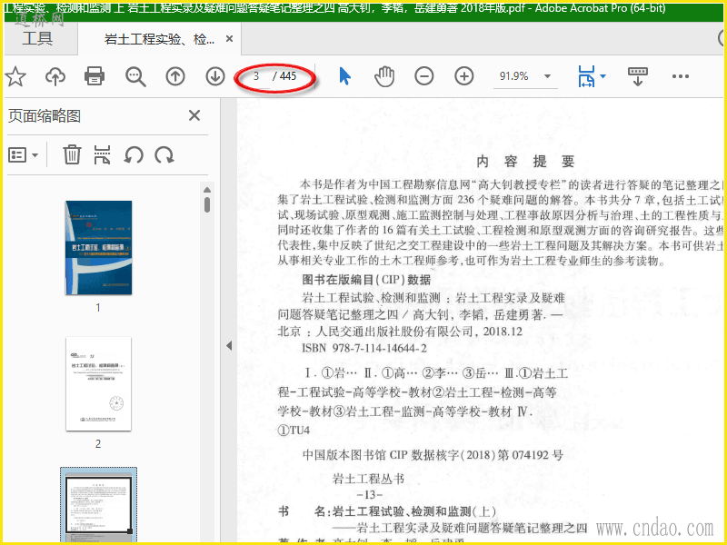 pdf扫描文件共445页 岩土工程实验、检测和监测 上 岩土工程实录及疑难问题答疑笔记整理之四 高大钊,李韬,岳建勇著 2018年版