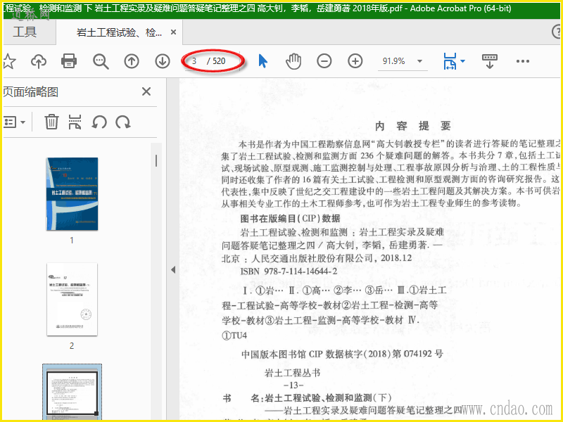pdf扫描文件共520页 岩土工程试验、检测和监测 下 岩土工程实录及疑难问题答疑笔记整理之四 高大钊,李韬,岳建勇著 2018年版