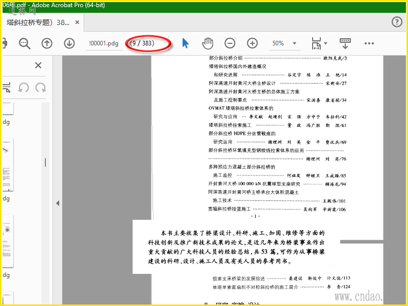 桥梁技术研究与工程实践(矮塔斜拉桥专题) pdf扫描文件共383页2006年 本书主要收集了桥梁设计,科研,施工,加固,维修等方面的科技创新及推广新技术成果的论文,是近几年来为桥梁事业作出重大贡献的广大科技人员的经验总结,共53篇,可作为从事桥梁建设的科研,设计,施工人员及有关人员的参考用书