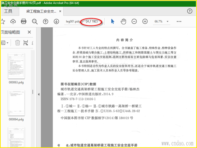 城市轨道交通高架桥梁工程施工安全交底手册 (杨林杰编著) 共192页 安全无小事,细节决定成败。在城市轨道交通高架桥梁工程施工安全管理工作的事前预防、超前控制上,抓好每一件小事,重视每一个细节,把小事做细,把细节做严、做实、做到位,向精细化管理要安全。在城市轨道交通高架桥梁工程施工领域