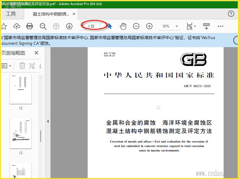 金属和合金的腐蚀 海洋环境全腐蚀区混凝土结构中钢筋锈蚀测定及评定方法.pdf