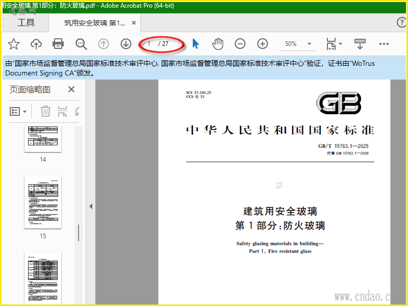 GB15763.1-2025建筑安全玻璃-防火玻璃