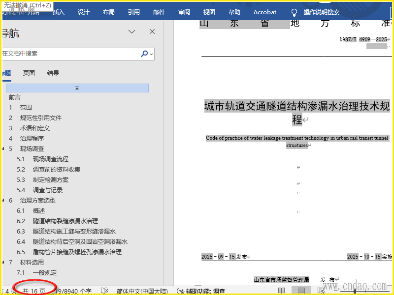 2025山东轨道交通隧道结构渗漏水治理规程