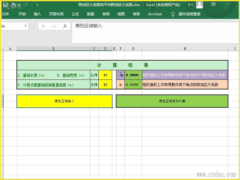 矩形面积角点附加应力系数计算xls