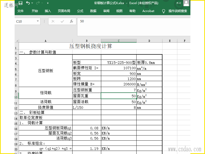 压型钢板挠度计算xlsx