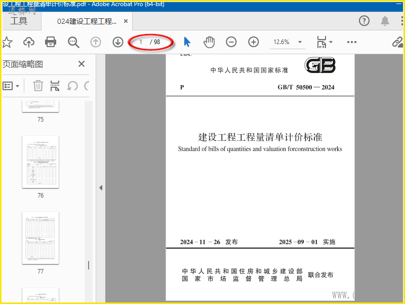GB-2024建设工程工程量清单计价标准