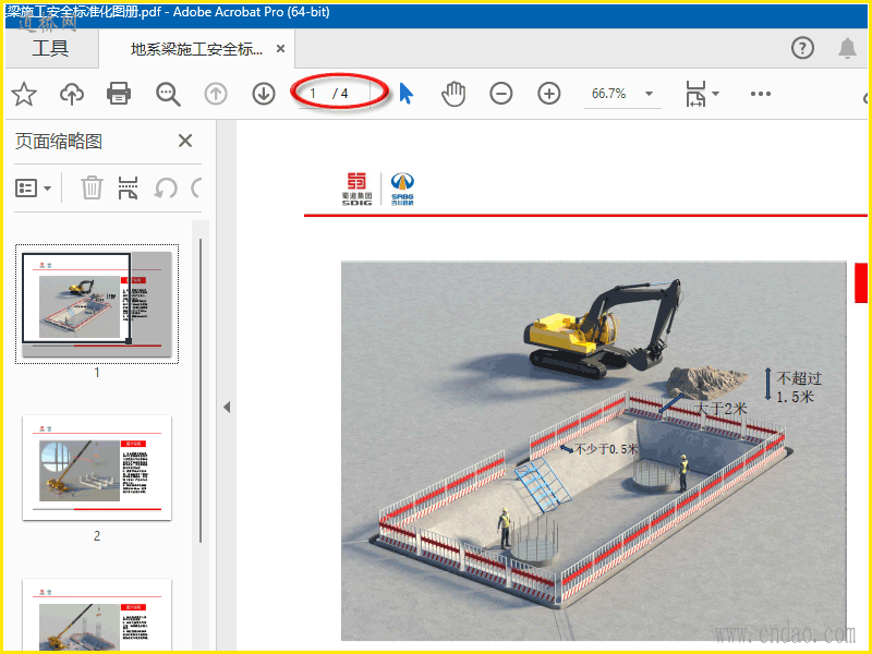 地系梁施工安全标准化图册主要明确了基坑开挖、钢筋笼处理及吊车作业的安全规范,基坑开挖需按方案实施,挖掘机旋转半径内禁站人且做好截排水,基坑边缘 50cm 处设防护栏杆,150cm 内不得堆载;钢筋笼吊装用专用吊具、双吊点对称布置,吊装前试吊检查,设抗风绳设置等。该图册采用三维效果