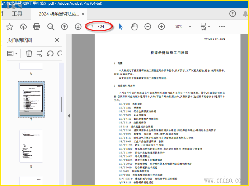 《TCMRA 22-2024 桥梁悬臂法施工用挂篮》
