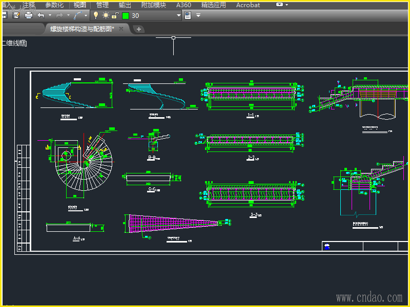 螺旋楼梯构造与配筋图.dwg