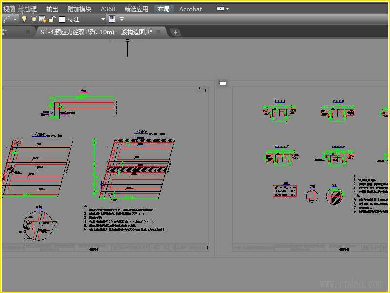 10m预应力砼双T梁通用图CAD版