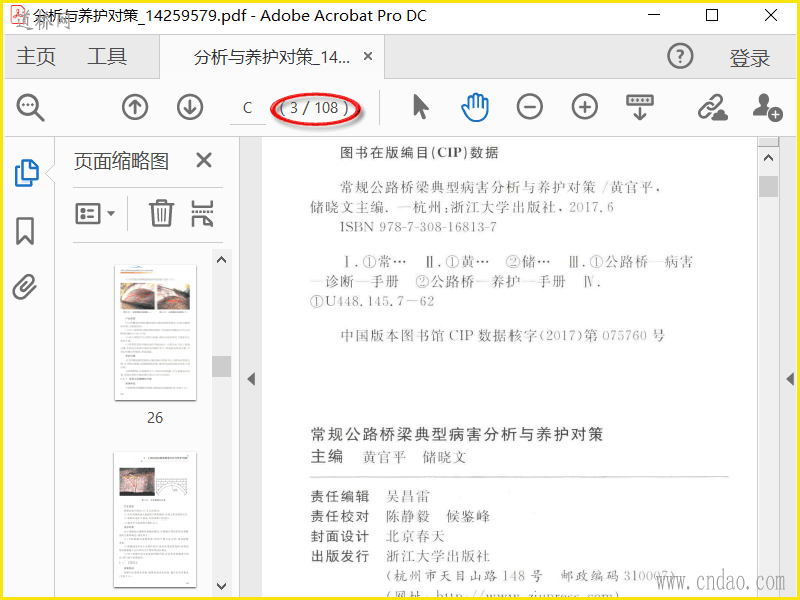 pdf扫描文件共108页 常规公路桥梁典型病害分析与养护对策 2017年7月浙江大学出版社出版的图书 作者是黄官平著 主要通过对桥梁的结构类型、受力部件、材料特性等多个方面进行分析,详细阐述了公路桥梁典型病害的类型、表现特性、检查要点、产生原因及处治措施,着重介绍桥梁病害是类型,分析