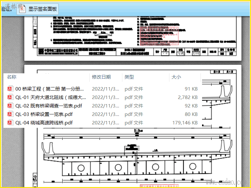 均为 pdf格式 天府大道北延线(成德大道北延线)项目 三环路至围城路段工程二标段桥梁工程 绕城高速跨线桥2022.8 QL-01 施工图设计说明.pdf 62页 QL-02 既有桥梁调查一览表.pdf QL-03 桥梁设置一览表.pdf QL-04 绕城高速跨线桥.pdf