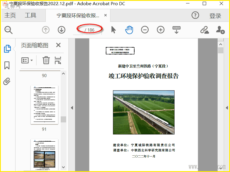 新建中卫至兰州铁路(宁夏段) 竣工环境保护验收调查报告 二〇二二年十一月 pdf共186页