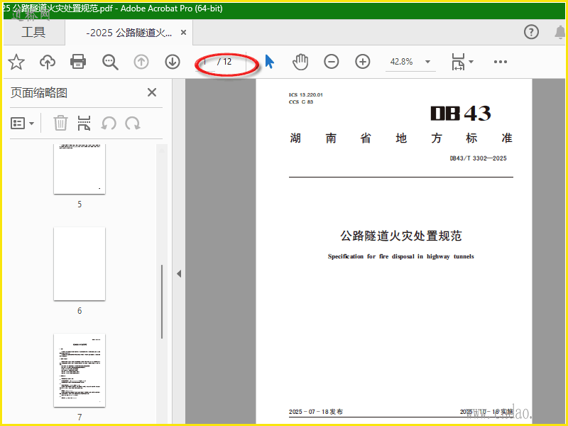 DB 43∕T 3302-2025 公路隧道火灾处置规范.pdf