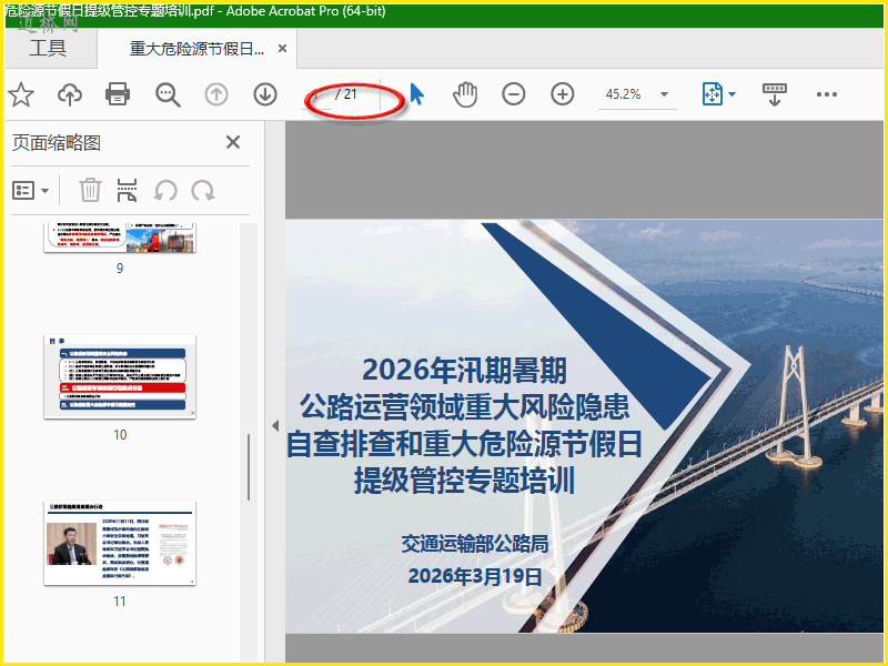 2026年汛期暑期 公路运营领域重大风险隐患 自查排查和重大危险源节假日 提级管控专题培训 交通运输部公路局 2026年3月19日