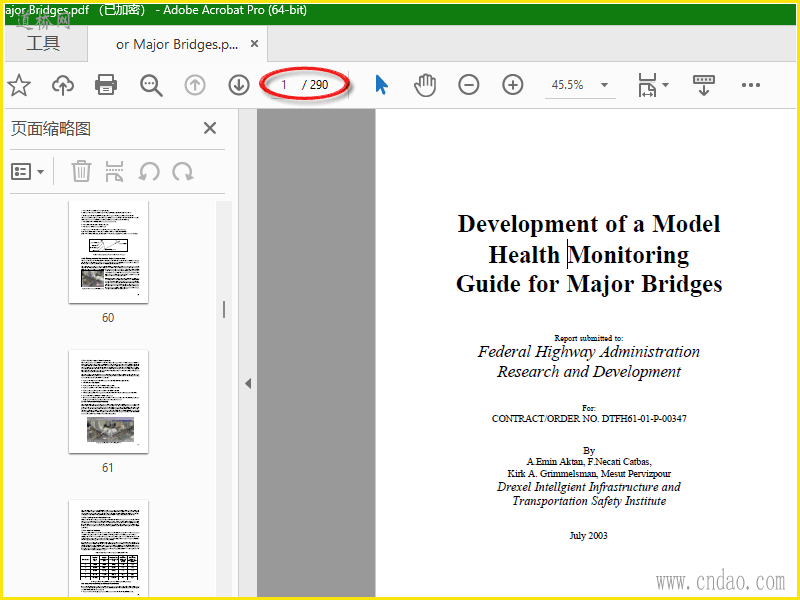 《Development of a Model Health Monitoring Guide for Major Bridges》 (美国联邦公路管理局, 2003) 内容简介:这是FHWA发布的一份核心技术指南,详细阐述了桥梁健康监测的概念、设计原则、数据管理以及实施步骤。报告提供了从传感