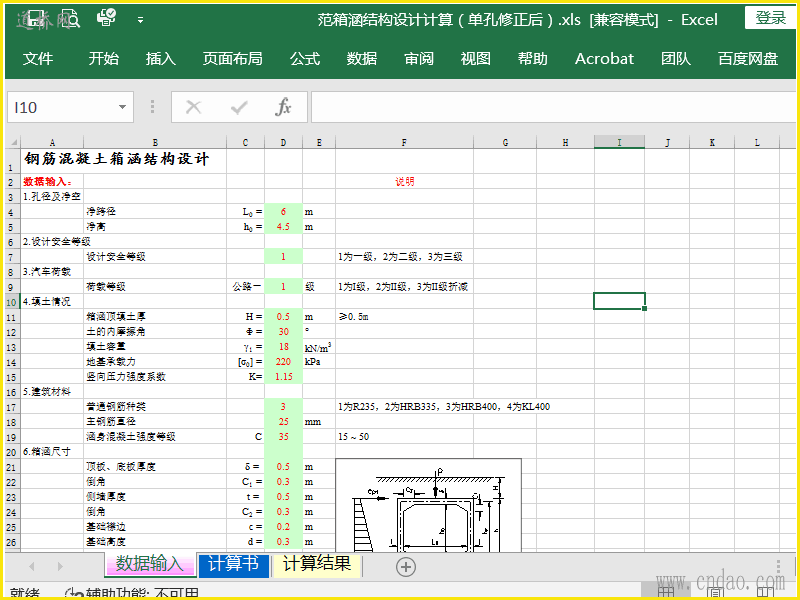 箱涵结构设计计算(单孔修正后)xls