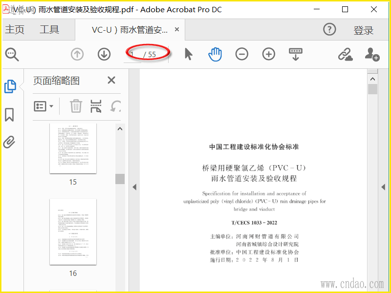 CECS桥用硬聚氯乙烯雨水管道规程