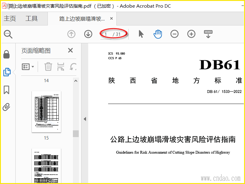 DB61T1533-2022公路上边坡崩塌滑坡灾害风险评估指南