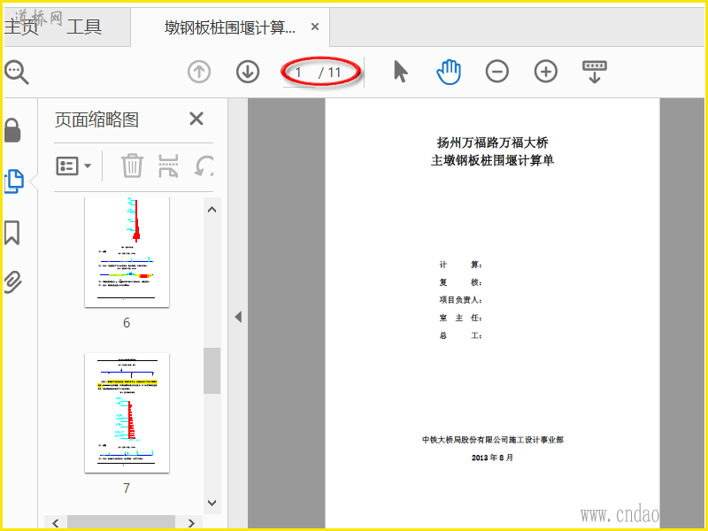扬州万福大桥主塔墩钢板桩围堰计算单 2013.8