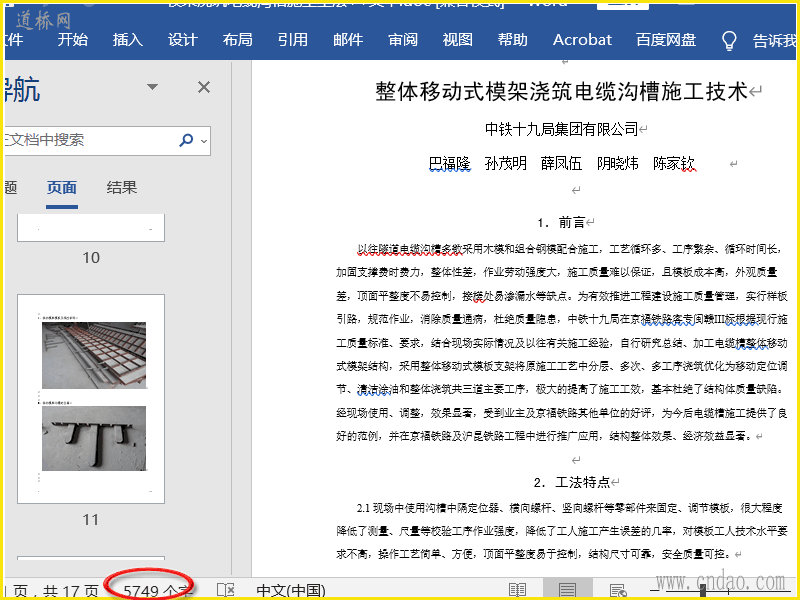 整体移动式模架浇筑电缆沟槽施工技术 doc共17页
