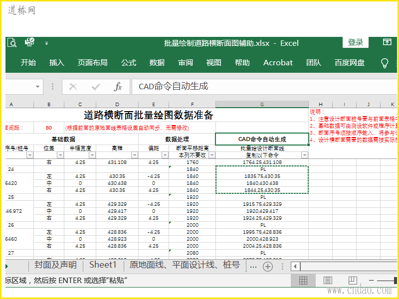 CAD命令辅助-批量绘制道路横断面xls