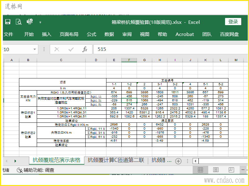 按照《公路钢筋混凝土及预应力混凝土桥涵设计规范》2018规范编制,内含2个桥梁的抗倾覆验算内容