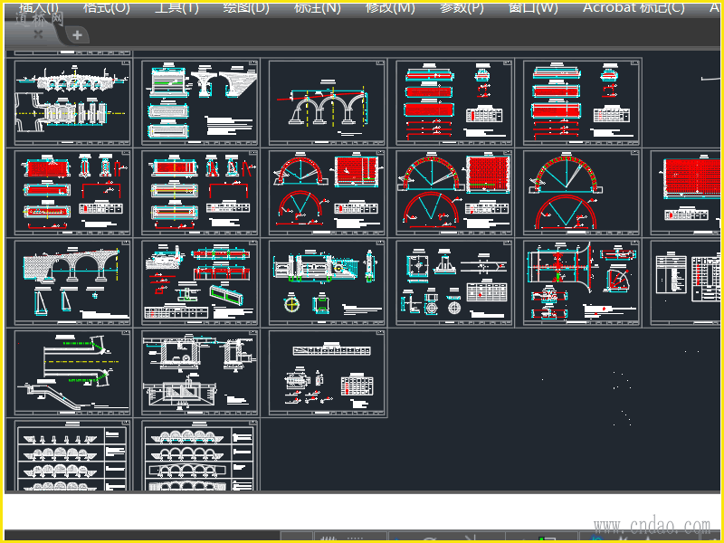 5孔对称非等跨景观拱桥图纸