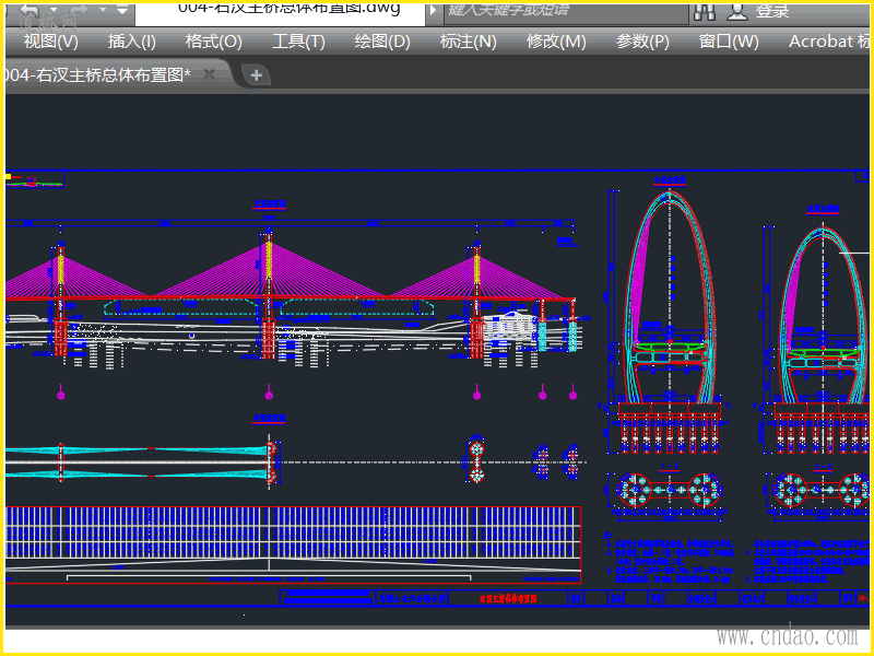 马鞍山2×260m右汊三塔斜拉桥-图纸