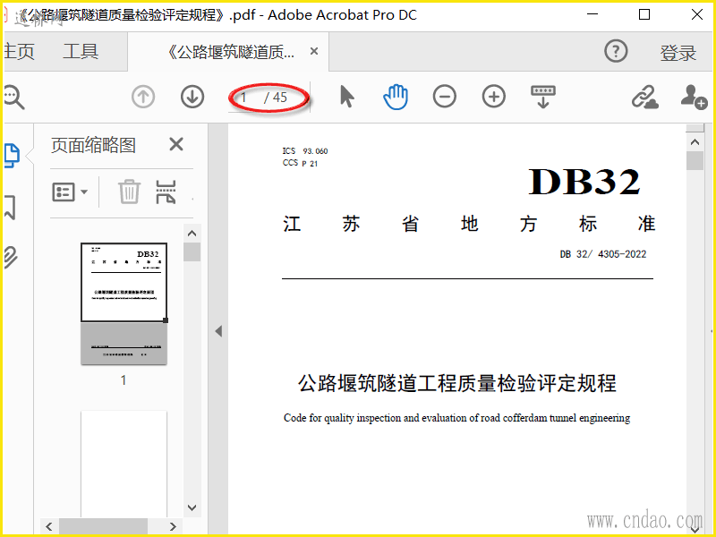 DB32T 4305-2022《公路堰筑隧道质量检验评定规程》