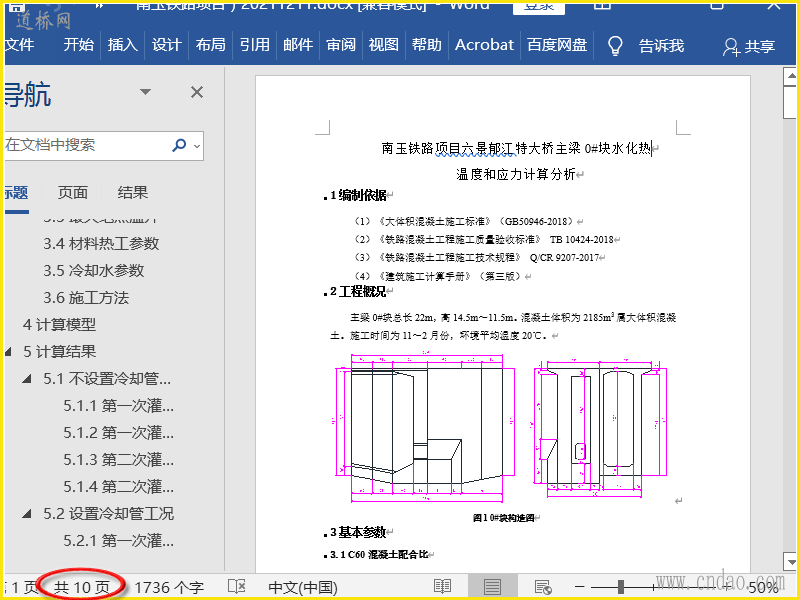 六景郁江桥大尺寸0#施工块水化热分析