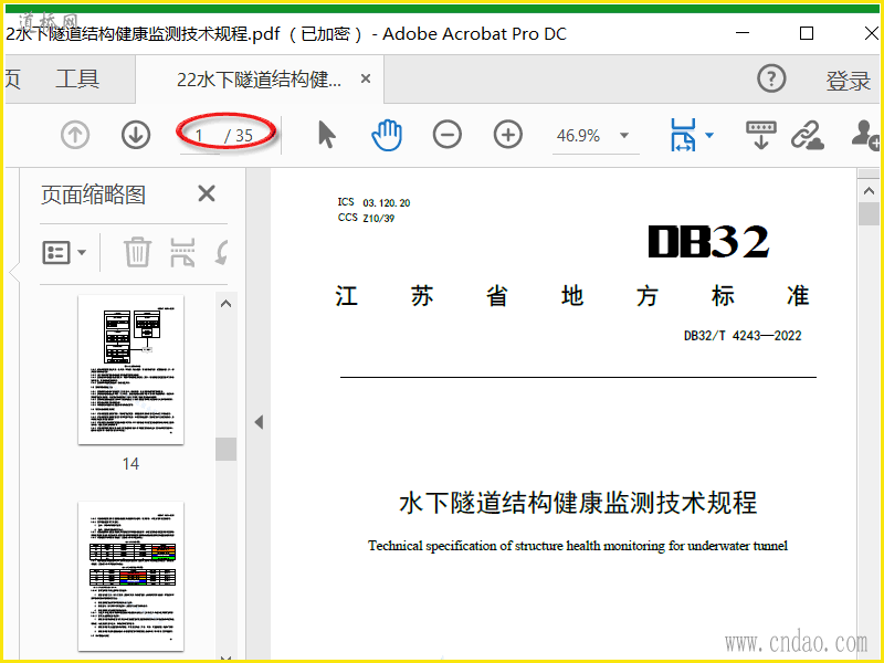 DB32T4243-2022水下隧道结构健康监测技术规程