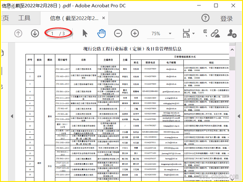 现行公路工程行业标准(定额)及日常管理组信息(截至2022年2月28日)