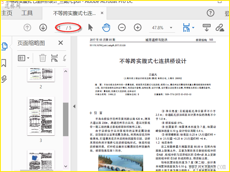 不等跨实腹式七连拱桥设计