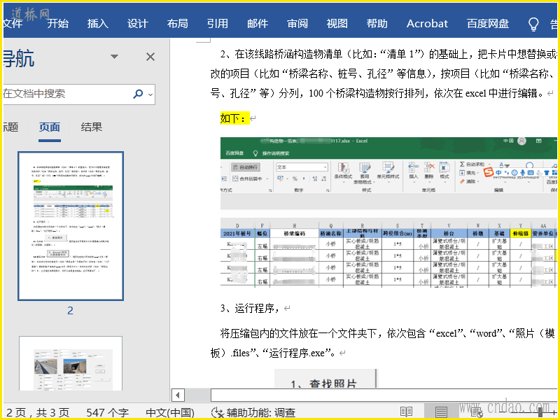 JTG 5120养护规范 新版桥梁卡片快速从excel中导入信息到word文件中。