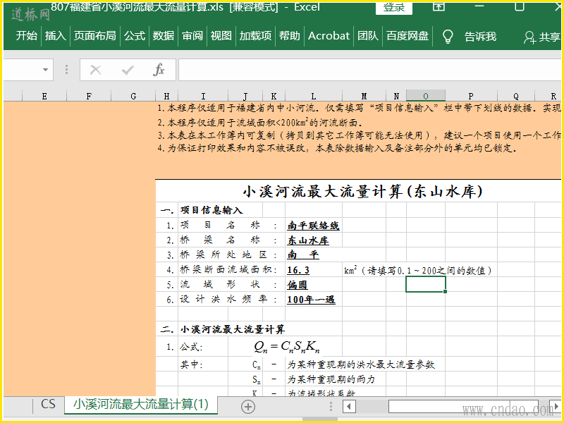小溪河流最大流量计算xls