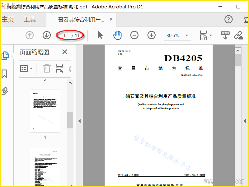 2019宜昌磷石膏及其产品质量标准