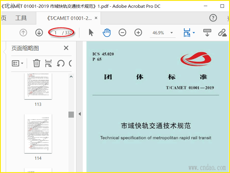 《T∕CAMET 01001-2019 市域快轨交通技术规范》