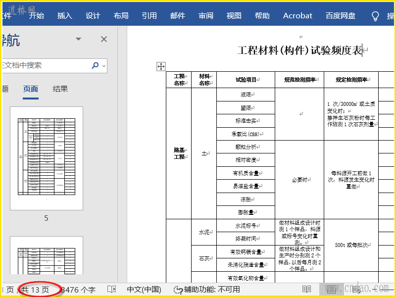工程材料(构件)试验频度表