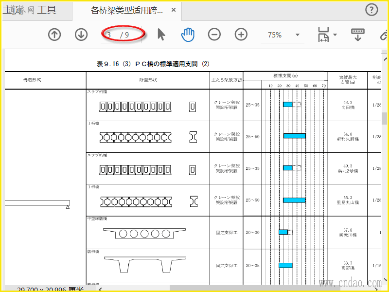 各桥梁类型适用跨度(日文)