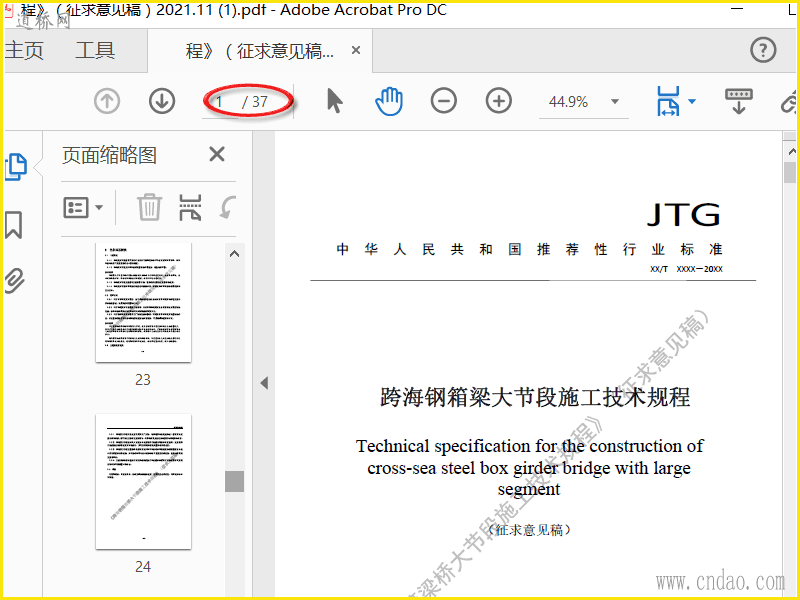 《跨海钢箱梁桥大节段施工技术规程》(征求意见稿)2021.11