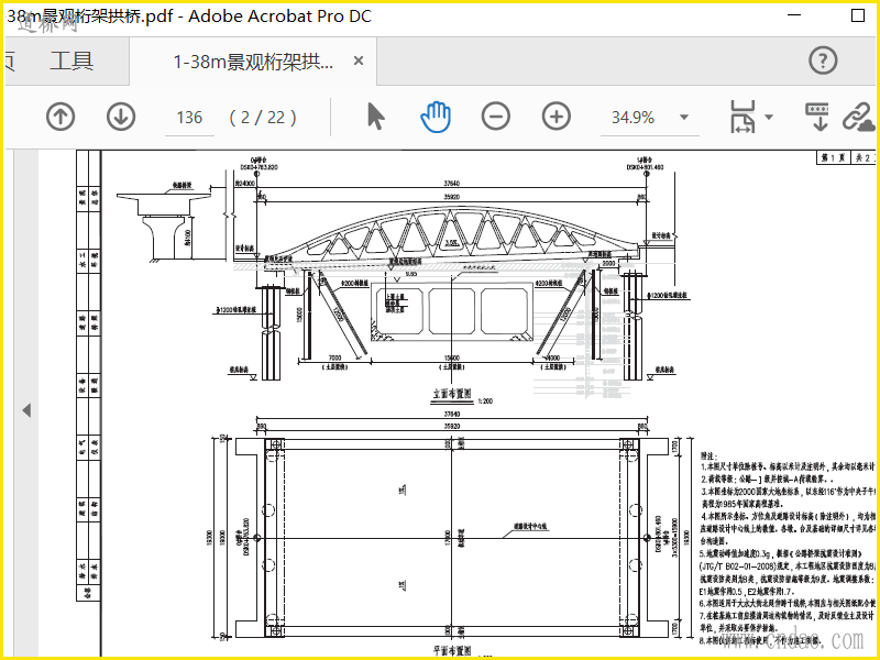容易线1-38m景观桁架拱桥图纸