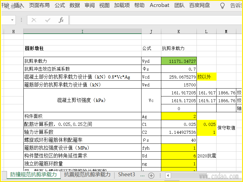 防船撞规范和 抗震规范抗剪承载力计算表格1.xlsx