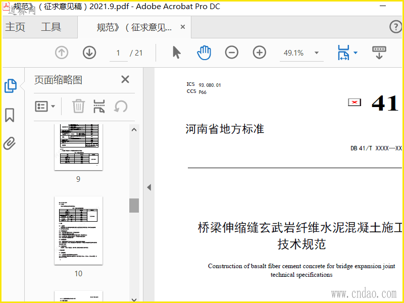《桥梁伸缩缝玄武岩纤维水泥混凝土施工技术规范》(征求意见稿)2021.9