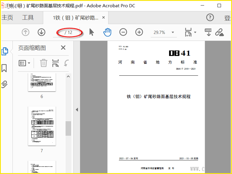 DB41T 2151-2021铁(钼)矿尾砂路面基层技术规程