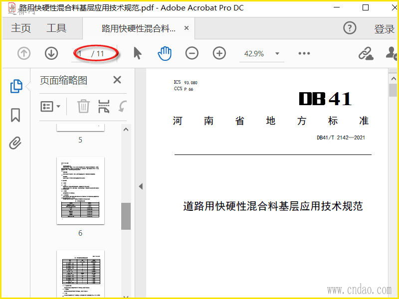 DB41T 2142-2021道路用快硬性混合料基层应用技术规范