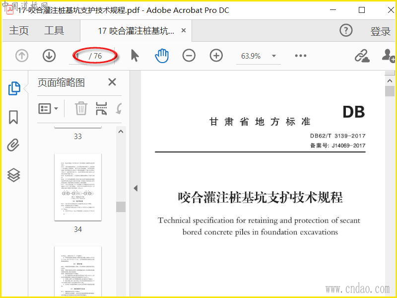 DB62∕T 3139-2017 咬合灌注桩基坑支护技术规程