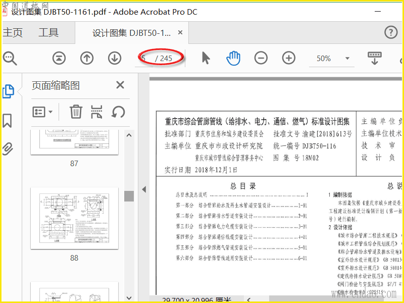 渝18M02 重庆市综合管廊管线(给排水、电力、通信、燃气)标准设计图集 DJBT50-1161