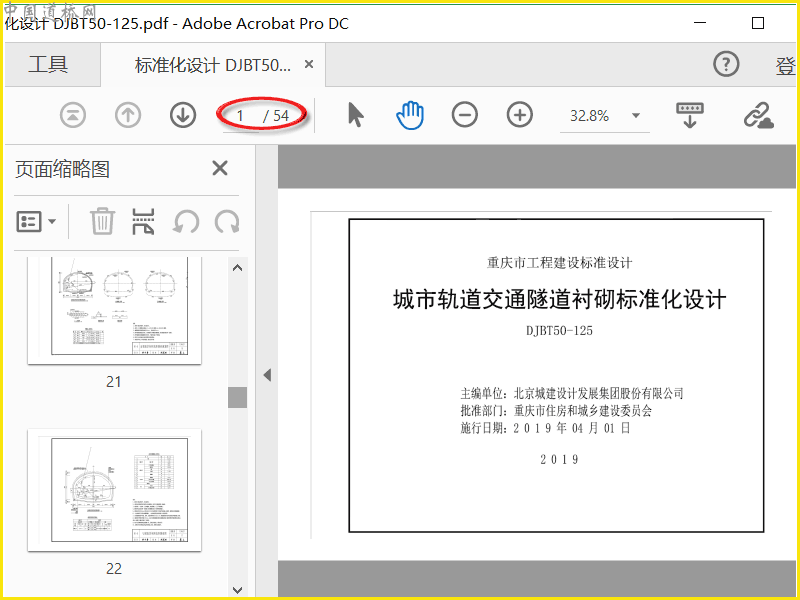 渝19M01 城市轨道交通隧道衬砌标准化设计 DJBT50-125